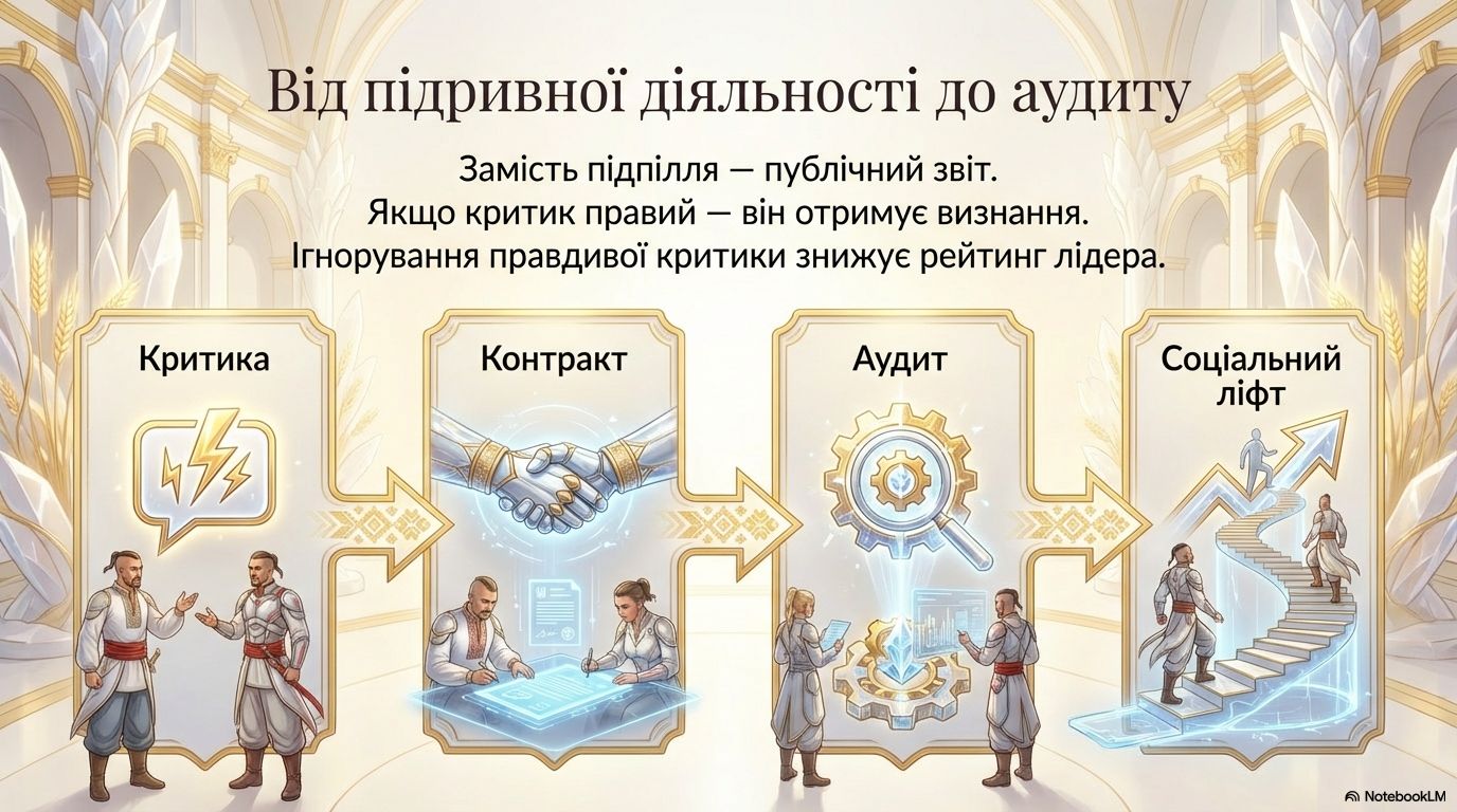 У Третьому Гетьманаті право на критику – це не «милість» зверху, а оплачувана функція безпеки. Ми не боремося з тими, хто мислить інакше, – ми інтегруємо їхній інтелект у систему захисту нашого спільного майбутнього.